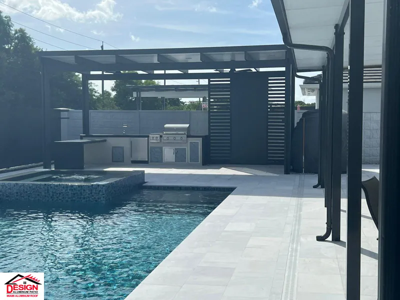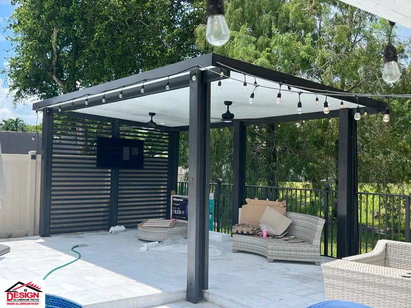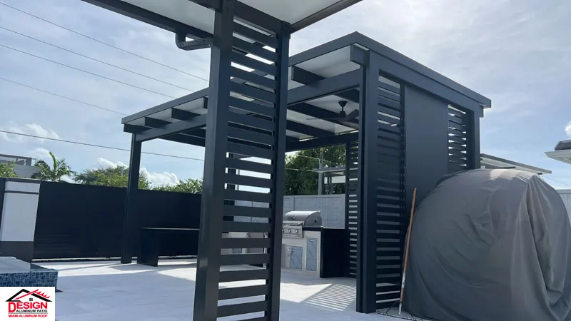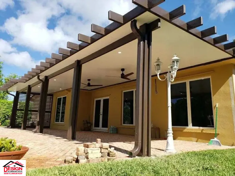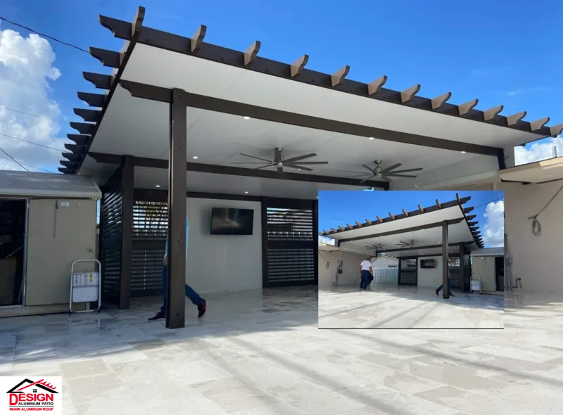 Explore aluminum pergolas with imitation wood and wood-grain finishes—the warmth of timber with Florida-ready durability. Design Aluminum Patio serves North Port and statewide with custom sizing, powder-coated frames, and realistic grain. Tap any photo for a full-size view.