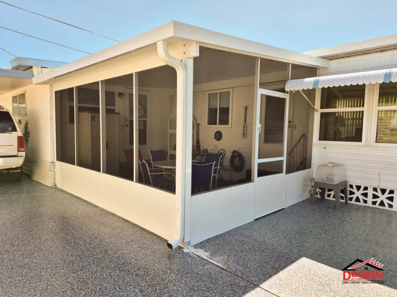 Browse lanai builds, patio screen rooms, and pool cages engineered for Florida wind, humidity, and sun. Design Aluminum Patio supplies aluminum framing, mesh, and coordinated details from North Port—tap any image for a full-size view.